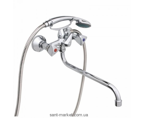 Смеситель двухвентильный с длинным изливом и душем Rubineta коллекция Rubin хром C1SK04