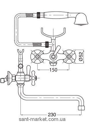 Смеситель двухвентильный с длинным изливом и душем Bugnatese коллекция Old'800 бронза OLDBR086