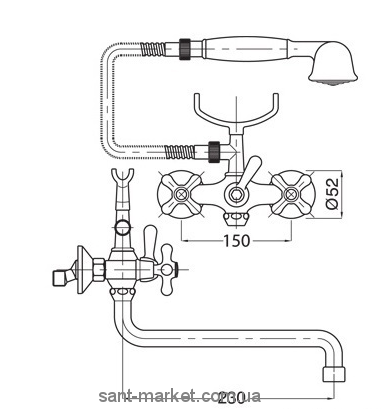 с душевым набором (ручная лейка, душевой шланг, настенный крепеж для лейки)
