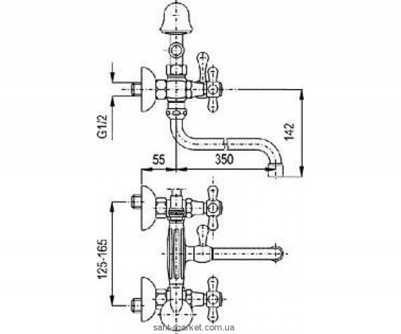 Смеситель двухвентильный с длинным изливом и душем KFA коллекция Standard хром 304-118-00