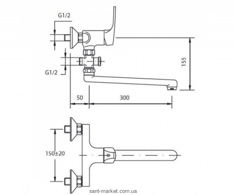 Смеситель однорычажный с длинным изливом и душем Teka коллекция Inca хром 53.1222.12