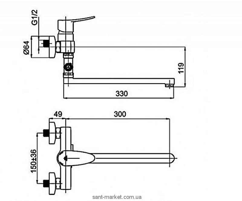 излив c керамическим дивертером с обратным клапаном, эксцентрики с тарелочками, душевой шланг 150 см, душевая лейка, настенный держатель для душа