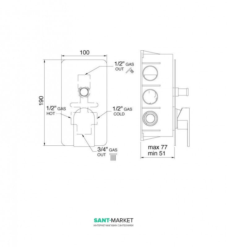Смеситель скрытый (встраиваемый) Treemme Ran хром 2249CС01