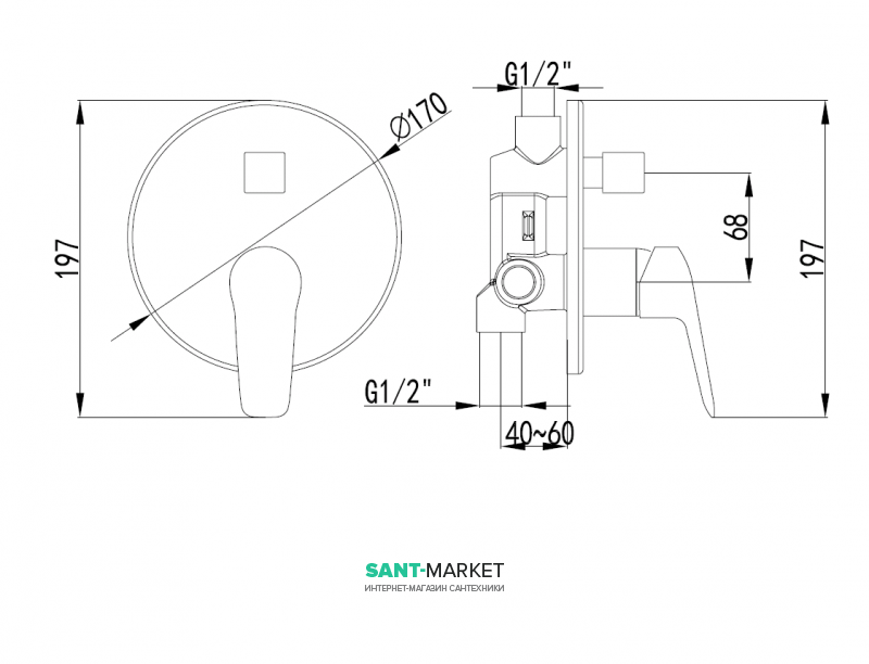 Смеситель для ванны скрытый (встраиваемый) Volle Nemo хром 15142200