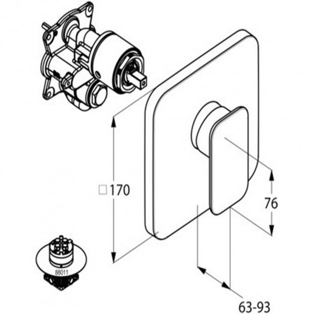 Смеситель встраиваемый для душа Kludi E2 однорычажный, внешняя монтажная часть.