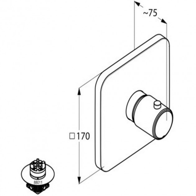 Внешняя монтажная часть смесителя для душа Kludi E2, с термостатом.