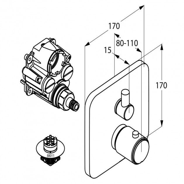 Внешняя монтажная часть смесителя для душа Kludi E2, с термостатом.
