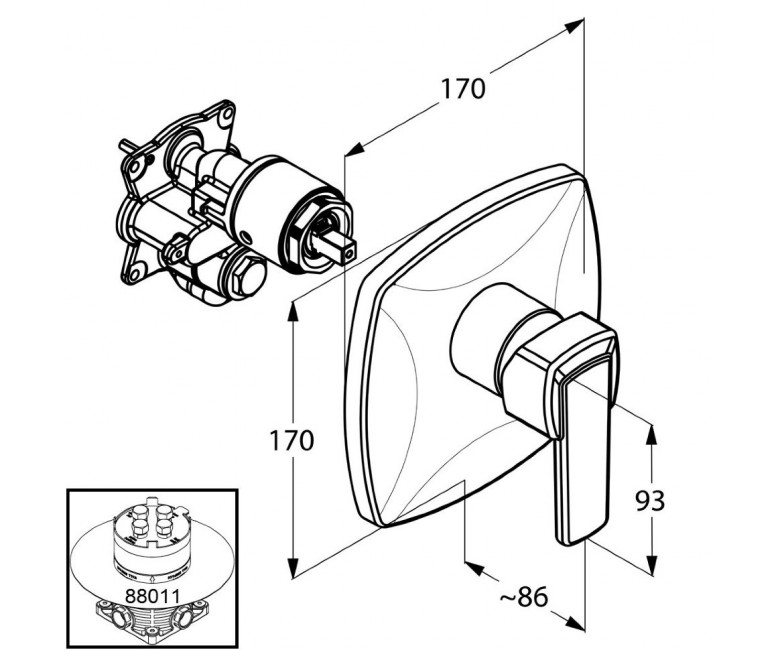 Однорычажный встраиваемый смеситель для ванны и душа Kludi Q-Beo (внешняя монтажная часть) предназначен для KLUDI 88011 настенного монтажа. Отлит из латуни с хромированным покрытием. Внешняя часть смесителя имеет функциональный элемент с керамическим картриджем, который ограничивает расход горячей воды и обеспечивает мягкость хода рычага.