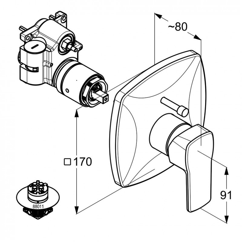 Встраиваемый смеситель для душа с термостатом, внешняя монтажная часть.