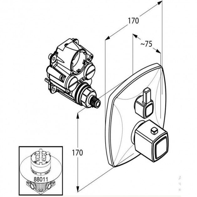 Встраиваемый смеситель для душа с термостатом, внешняя монтажная часть.