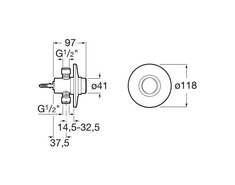 1) Вентиль для душа Roca Sprint нажимной со скрытой частью с круглой настенной панелью