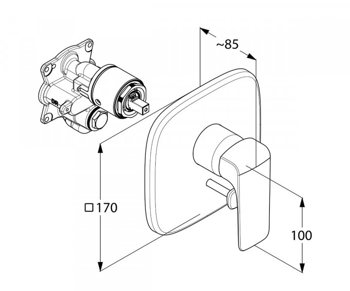 Смеситель встраиваемый для душа Kludi Ameo однорычажный, внешняя монтажная часть.