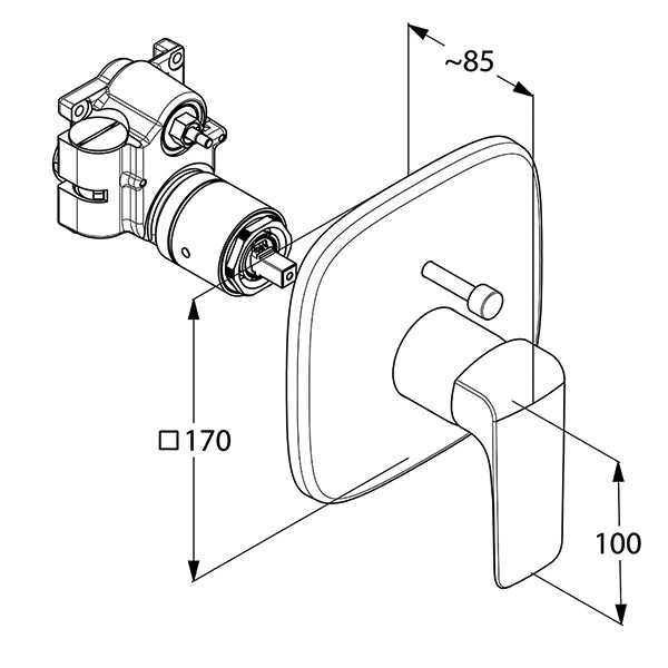 Смеситель встраиваемый для душа Kludi Ameo однорычажный, внешняя монтажная часть, защищен от обратного тока воды.