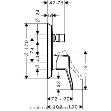 Смеситель скрытый (встраиваемый) Hansgrohe коллекция Metris Classic никель 31486000