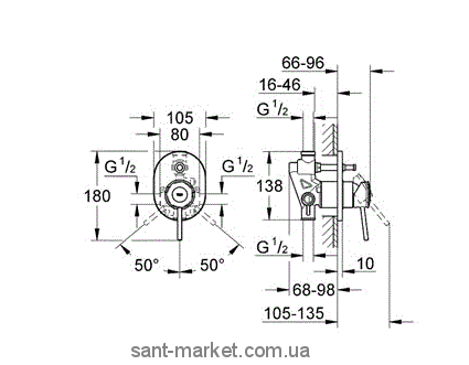 Смеситель скрытый (встраиваемый) Grohe коллекция BauClassic хром 29047000