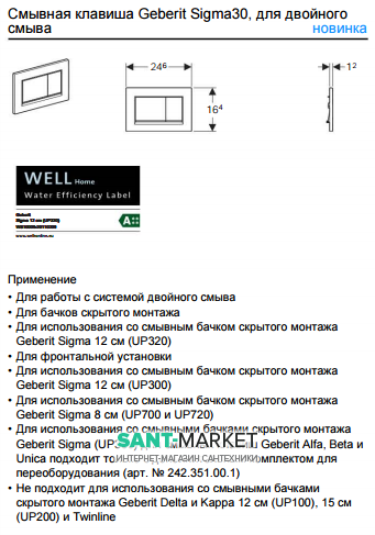 Описание клавиши смыва Geberit Sigma30 (115.883.KN.1)