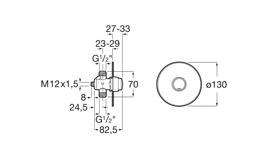 1) Смывная кнопка-клапан для писсуара Roca Avant с круглой настенной пластиной