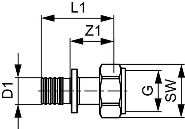 Соединение прямое TECE TECEflex с накидной гайкой 25х3/4 латунь 767573