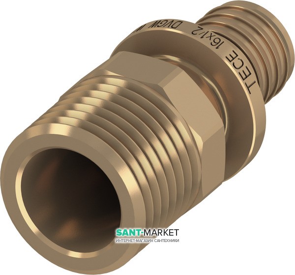 1) Соединение прямое Tece TECEflex с внешней резьбой 16xR 1/2" бронза