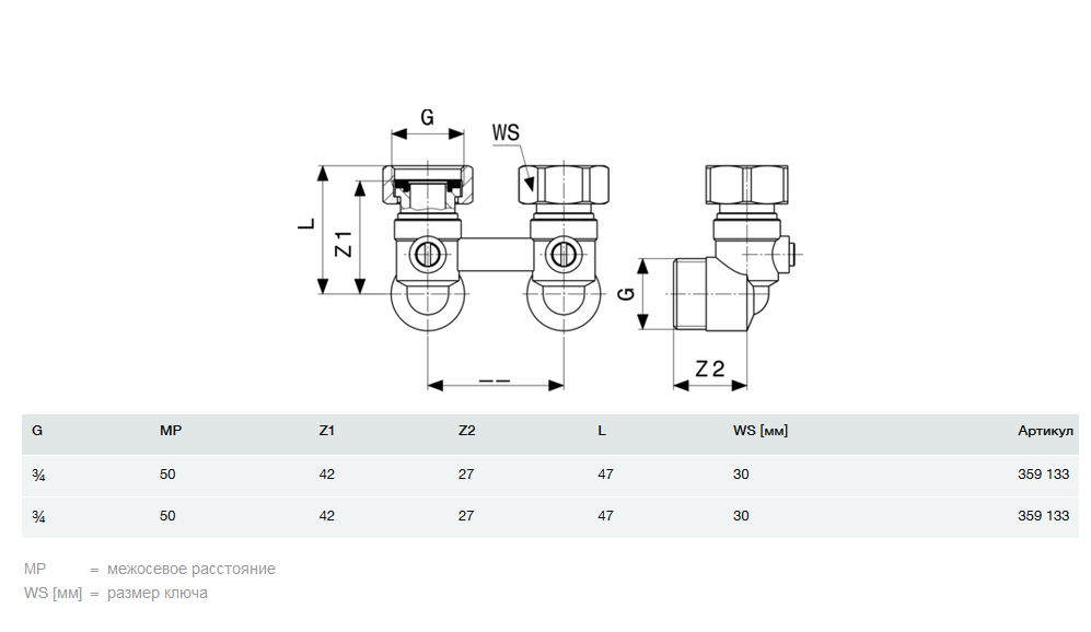 - Соединительный элемент для подключения радиатора модель 1097.5