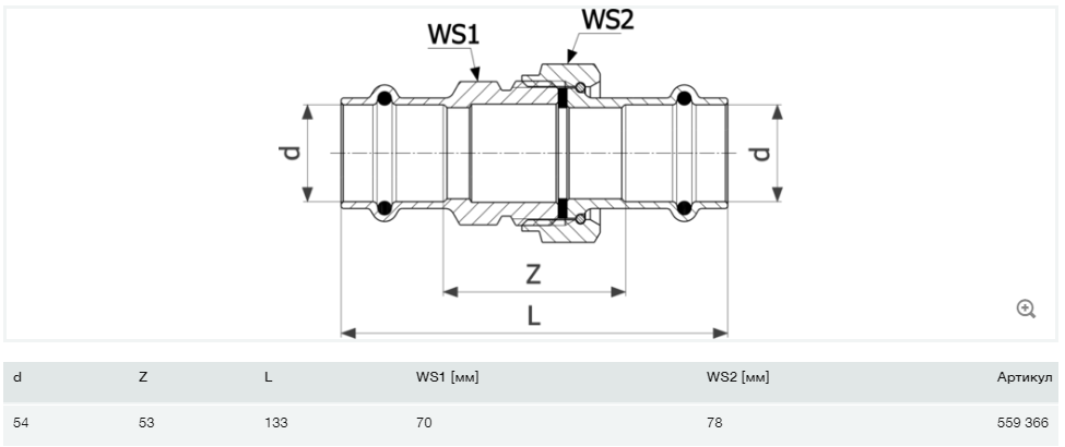 1) Соединительный элемент резьбовой Viega Prestabo 1160 54 нелегированная сталь