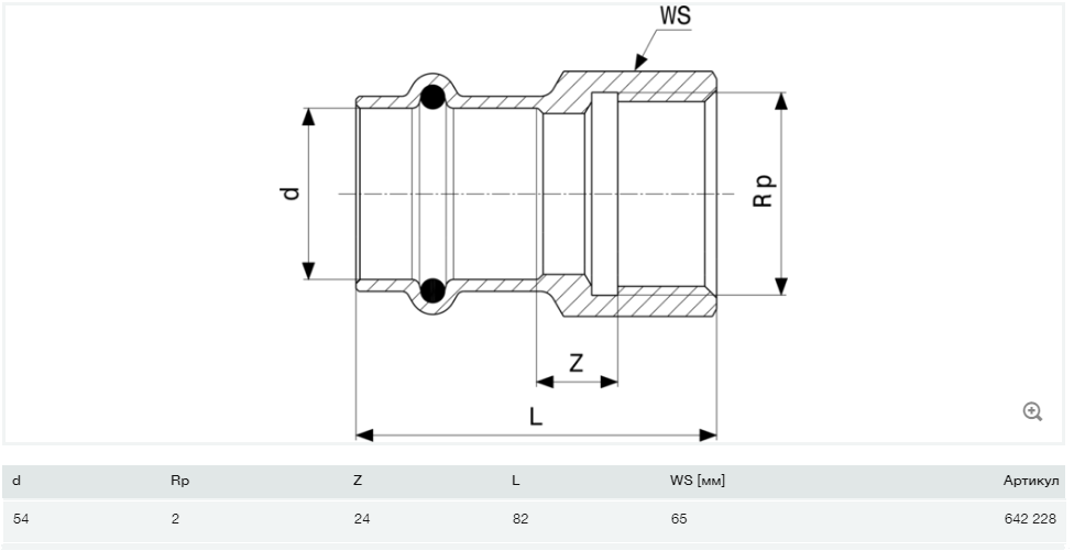 1) Соединительный элемент Viega Prestabo 1112 54хRp2 нелегированная сталь