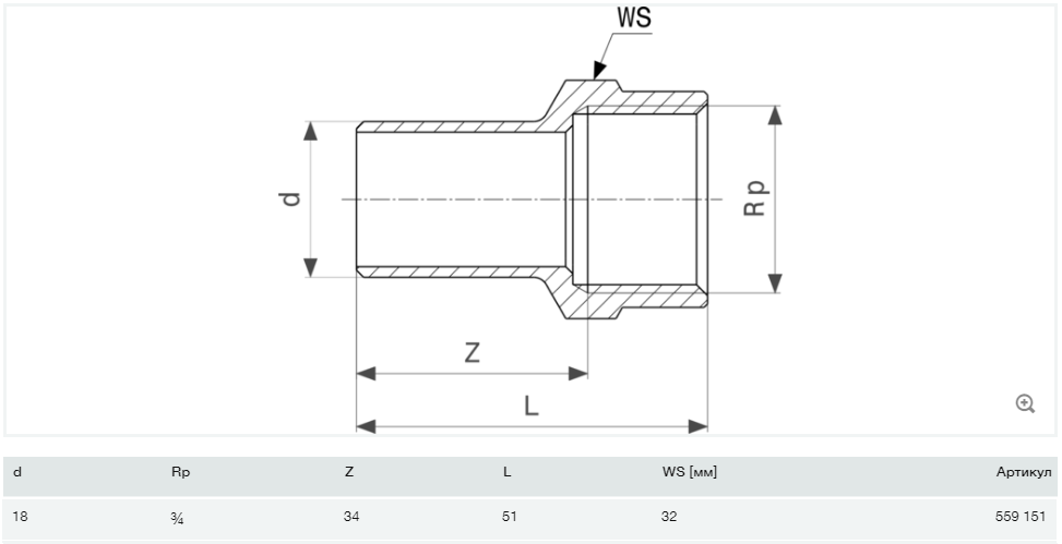 1) Соединительный элемент Viega Prestabo 1112.1 18хRp3/4 нелегированная сталь