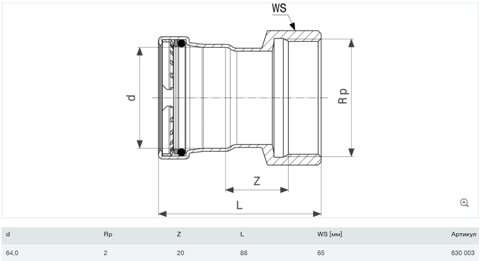 1) Соединительный элемент Viega Prestabo XL 1112XL 64хRp2 нелегированная сталь