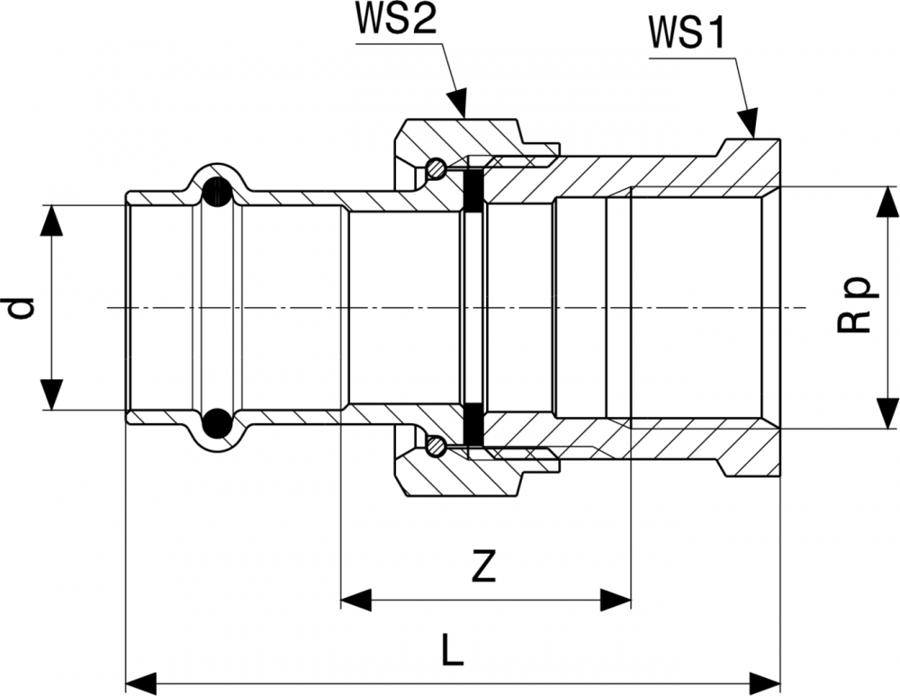 - Соединительный элемент резьбовой разъемный Sanpress с SC‑Contur модель 2262