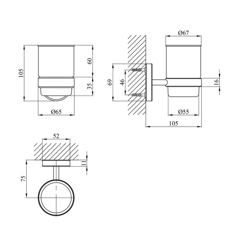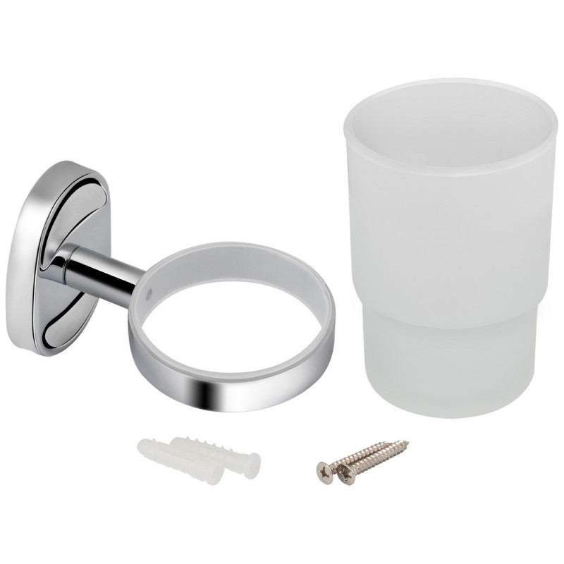 Настенный стакан Kroner KRM Elbe - ACG2906 для ванной комнаты состоит из стеклянного матового стакана и металлического держателя. Диаметр стакана 61 мм, крепится на стене на нужной высоте, он съёмный и легко моется. Скрытое крепление позволяет сохранить отделку, а хромированное покрытие предотвратит образование коррозии и грязи.