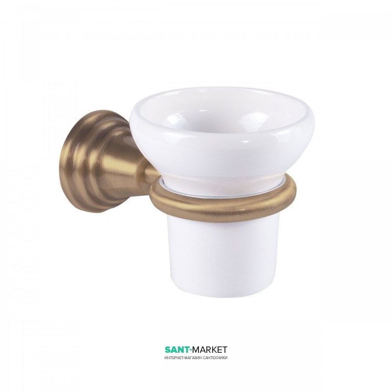 1) Стакан для зубных щеток Tres Retro-Tres с настенным держателем керамика/металл белый/состаренная латунь матовый