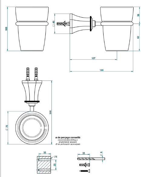 Стакан настенный для зубных щёток THG ArtDeco cristal матовое стекло/золото