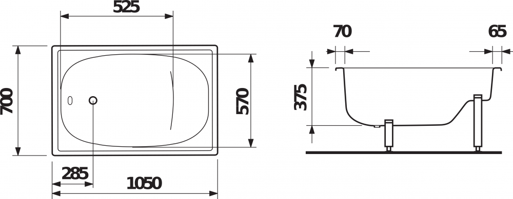 1) Стальная мини-ванна Jika Riga сидячая 105х70 см белый