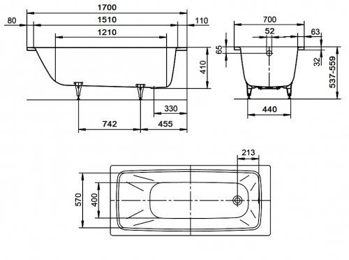 1) Стальная ванна Kaldewei Cayono 170x70 см mod 749 белый