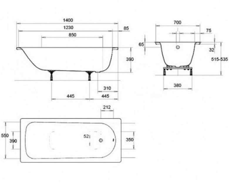 1) Стальная ванна Kaldewei Eurowa 140х70 см mod 309 белый