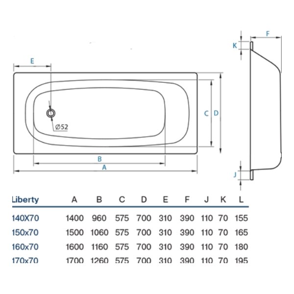 Ванна стальная Koller Pool Liberty 160х70 (B60C2200E) изготовлена из эмалированной стали 2,5 мм, имеет классическую прямоугольную форму.