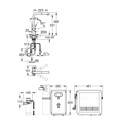 Отличительными особенностями стартового комплекта Grohe Blue Professional 31326002 являются: