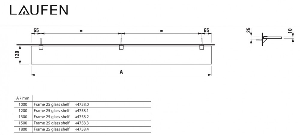 Стеклянная полка Laufen Frame 25 120х12 см прозрачное стекло/белый