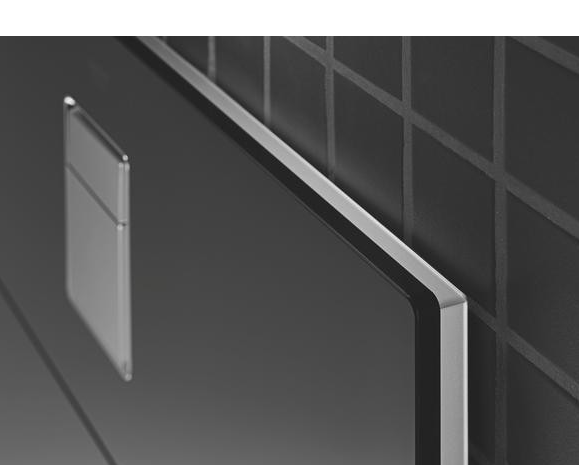 панель смыва Skate Cosmopolitan (хром) располагается на одном уровне со стеклянным модулем