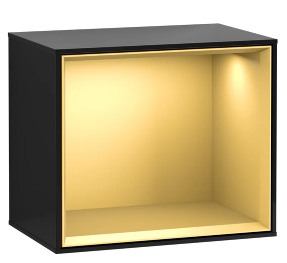 Стеллаж для ванной Villeroy & Boch Finion 41,8х35,6х27 см с подсветкой МДФ глянцевый черный лак/золотой матовый лак