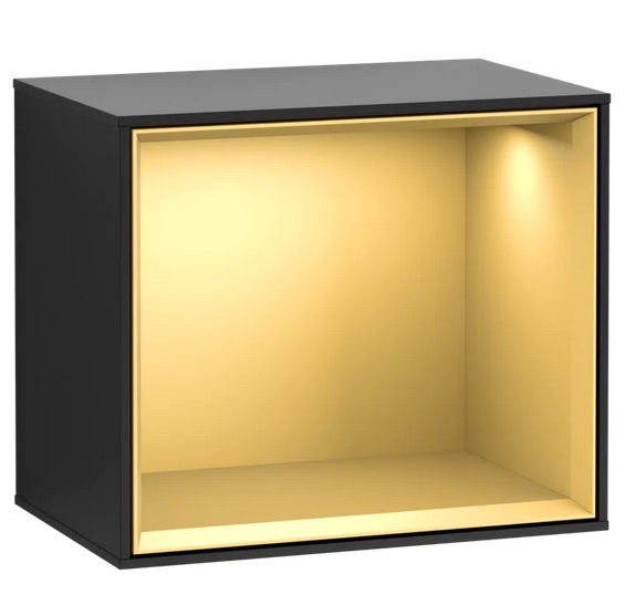Стеллаж для ванной Villeroy & Boch Finion 41,8х35,6х27 см с подсветкой МДФ черный матовый лак/золотой матовый лак