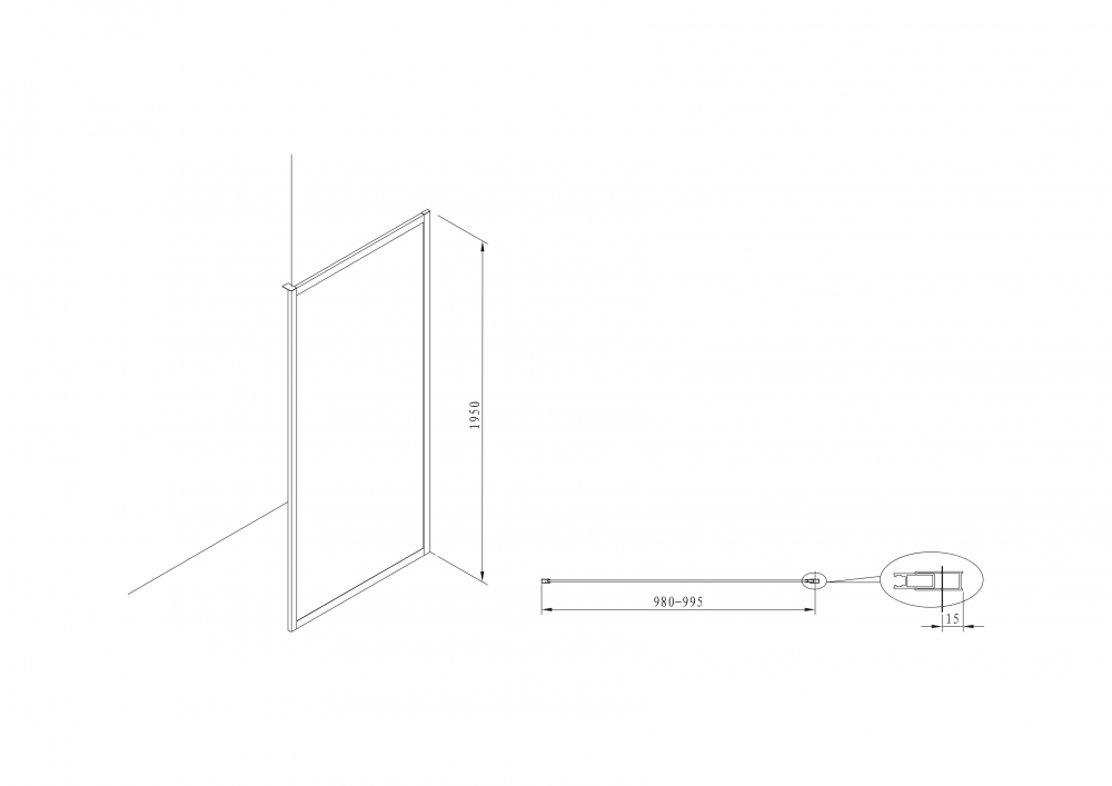 1) Стенка боковая для душевого уголка Roca Town 100x195 см профиль алюминий хром прозрачное стекло