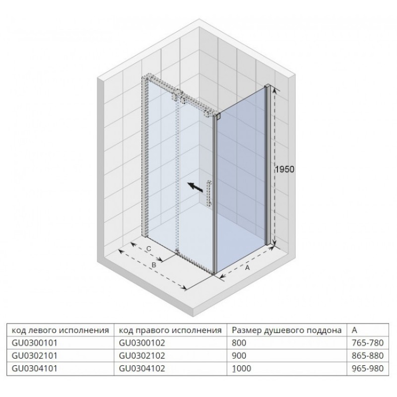 Стенка душевая боковая Riho Ocean O404 90 см правая хром/прозрачное стекло GU0302102