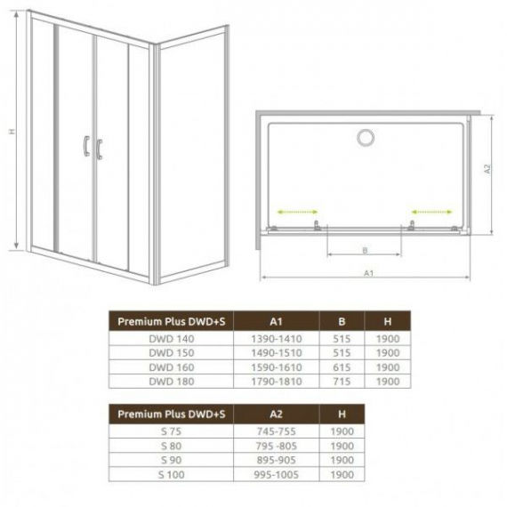 Душевые двери серии Premium Plus DWD/DWJ с боковой стенкой Premium Plus S допускается устанавливать как на поддоны, так и непосредственно на пол.