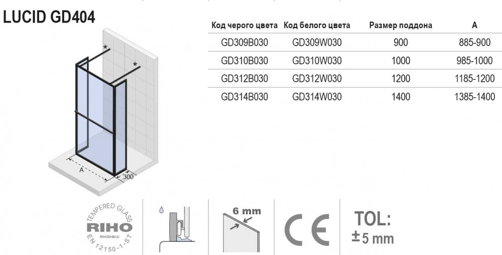 Стенка душевая Riho Lucid GD404 90 см белый/прозрачное стекло