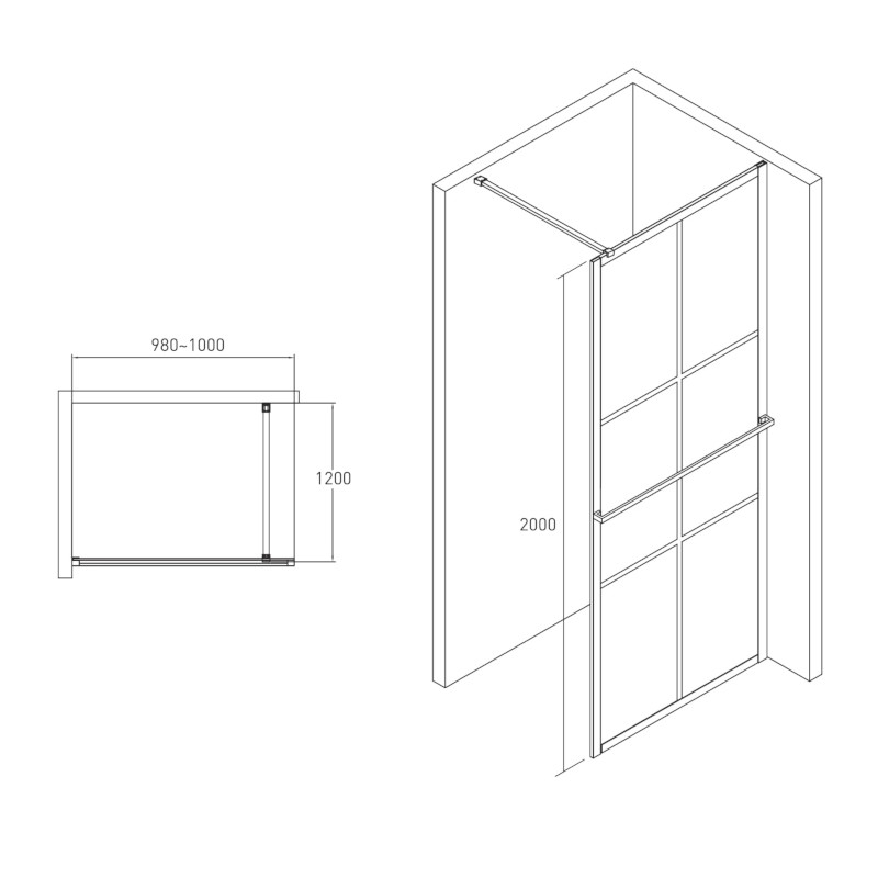 1) Стенка душевая Volle Malla Negra Walk-In 100 см черный матовый/прозрачное стекло