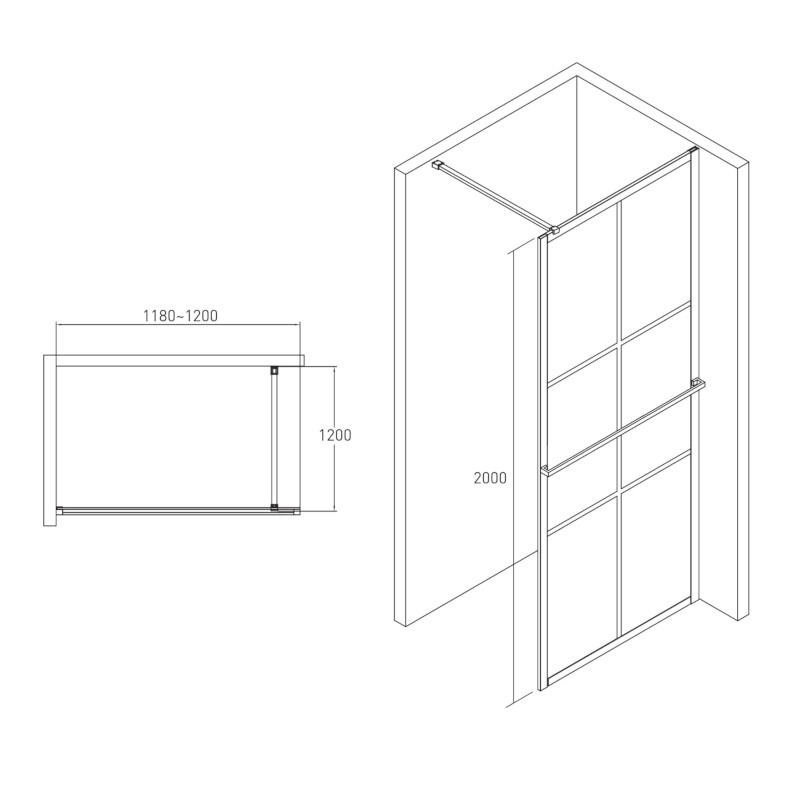 Стенка душевая Volle Malla Negra Walk-In 120 см черный матовый/прозрачное стекло