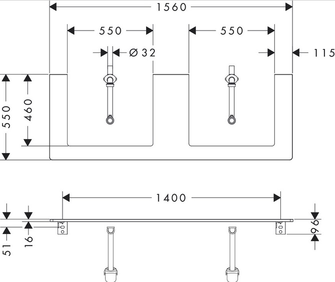 Столешница Hansgrohe Xelu Q 156х55 см с 2 вырезами под раковину 60 см ДСП белый глянцевый 54112050