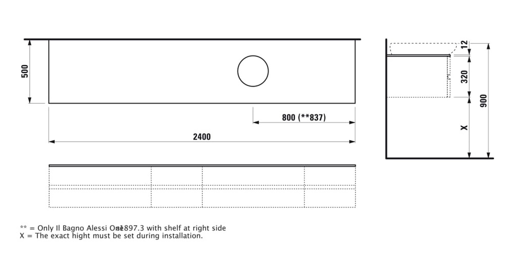Столешница Laufen IL Bagno Alessi One 240х50 см с вырезом справа технический мрамор белый глянцевый H4246030976311