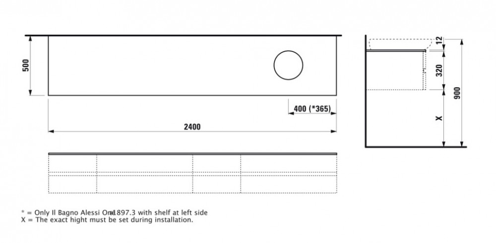 Столешница Laufen IL Bagno Alessi One 240х50 см с вырезом справа шпон грецкий орех